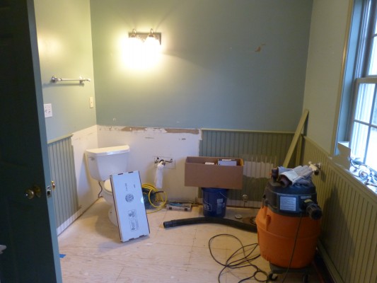 Just finished the bathroom remodel in Amherst NH, came out amazing. Keith removed the fiberglass tub and installed a new tub base and tiled the walls of the new shower area. We also removed all the existing beadboard and installed new, Keith also custom built a tall cabinet for storage and installed a new vanity and toilet. We painted the bathroom as well, walls and beadboard.